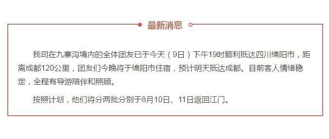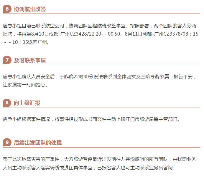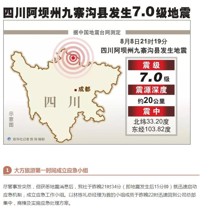 江门大方旅游迅速应对九寨沟7级地震,全体团友已安全撤离震中灾区