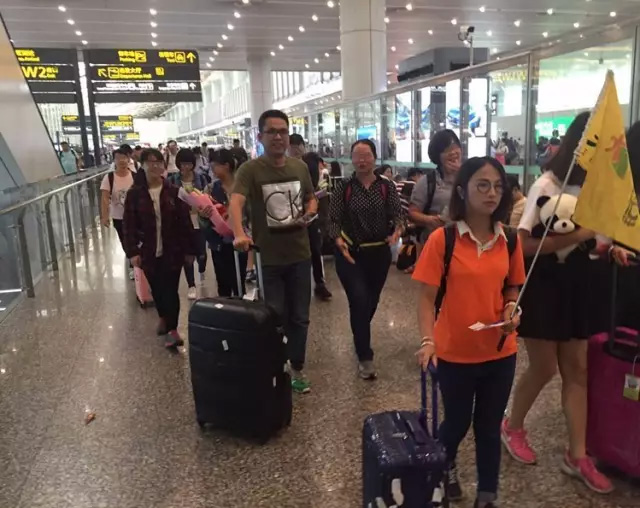 今天,我司于四川九寨沟的两个旅行团连同全陪导游一行16人,已按原定计划乘坐成都 - 广州航班,分别于今天凌晨00:40分和傍晚15:06分到达广州白云机场。我司派出华北业务公司总经理黄剑恒及旅游汽车服务公司总经理刘建良,为客人准备了食物、矿泉水、鲜花横幅,提前在机场等候他们的平安归来。