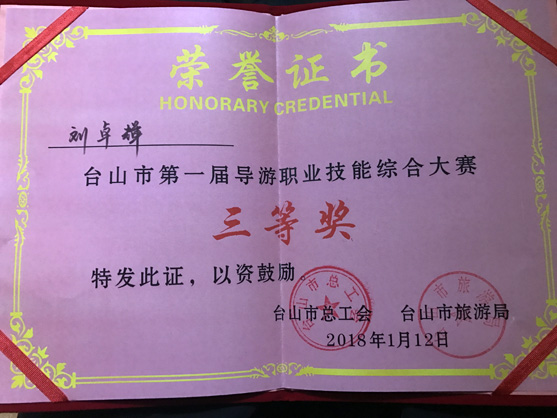 本次导游职业技能大赛的丰硕成果,展示了我社台山公司导游队伍的时代风采及高超的专业技能,让广大游客对我司专业导游的优质服务树立了信心的保证。